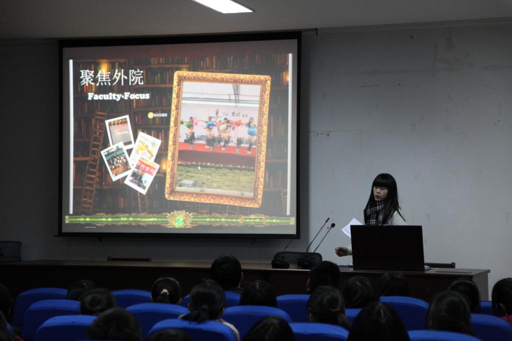 宣传工作水平,12月5日晚商院在学院414会议室召开学生新闻宣传培训交流会。外语学院团委书记邵磊、商院团委书记董璐、辅导员金耀出席了本次活动。商院三大组织学生干部、外语学院记者团、商院记者团参加了本次大会。商记团长韩军乐主持了本次培训交流会。 在培训会中,商院和外院记者团依次介绍了各自社团的基本情况,并就新闻宣传过程中的具体工作方法和心得进行了交流。接着,邵磊老师根据在外院这块工作的多年经验,围绕着“三体一位”、“实干巧干”、“多练文笔”等几个方面作了细致的讲述,并就研究投稿去向、完善考核方法、设立逐级上报制度等问题与商院学子进行了交流。最后,商院负责新闻宣传的金耀老师从新闻稿的标题、开头、结尾等具体层面与同学们分享了工作体会,并提出了相关的要求。 此次与兄弟学院的培训交流会,增进了两院之间关于新闻宣传工作的沟通和了解,有利于进一步提高17吃瓜网新闻