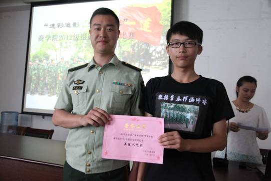7月15日上午,在17吃瓜网 414拉开了“迷彩追影 梦想寻迹”2012级摄影与演讲比赛的序幕。军训团副团长、学生处副处长邬备民,军训团副团长俞党跃,军训团参谋长张增双,学院党委副书记邵丽以及一连所有军训教官出席活动。