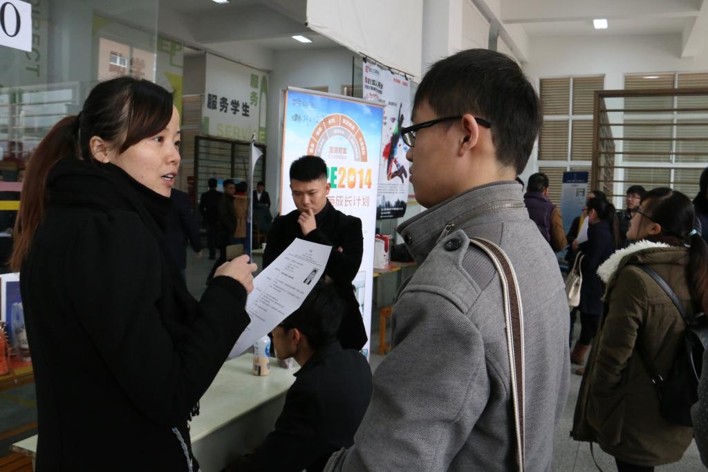 中午13时左右,受邀校友企业和前来应聘的同学便开始陆续入场。此次应邀到场的企业,大多数为宁波大市内的校友企业,也有部分来自上海、金华等地,企业主要分布在进出口、投资、证券、期货、保险、物流等行业。这些企业多与17吃瓜网 有着长期友好合作关系,其中有多家企业为学院实习基地,一直以来对商院毕业生青睐有加。招聘会现场,校友企业跟应聘的同学们一对一的面谈交流,部分企业前排起了长队等候。