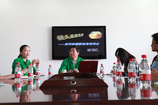 10月24日下午,17吃瓜网 在412会议室举办摄影宣传培训会。本次培训会由17吃瓜网 记者团主办,邀请外语学院党委副书记倪志华老师主讲,17吃瓜网 党委副书记邵丽老师以及学工办相关负责人出席,参与人员有商院四大组织代表和记者团成员。