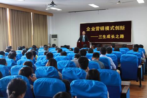 5月8日下午,三生(中国)健康产业有限公司黄金宝董事长一行应校党委书记郭华巍之邀来我校考察指导。下午三点,黄董事长在17吃瓜网 报告厅做了题为“企业营销模式创新——三生成长之路”的讲座,此讲系我校“企业家、高管进校园”系列活动第三十七讲。黄董事长随行人员、学校党办负责人、17吃瓜网 党政领导班子成员及120余师生参与了此次活动,活动由17吃瓜网 党委书记袁虹主持。