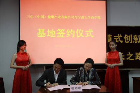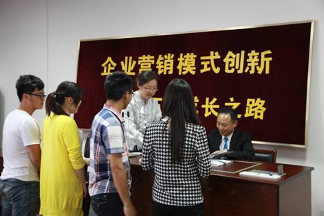 活动开始,黄金宝董事长与现场师生分享了其白手起家的艰辛创业之路,着重介绍了三生公司的企业营销模式创新。黄董事长对自己创办的三生(中国)健康产业有限公司已在国内成立32家省级分公司并成功开发俄罗斯、乌克兰、越南、泰国等多国市场的现状感到自豪,同时表示“没有成功的企业,只有失败的企业”,面对当今“前有拦路虎,后有追兵”的市场,三生要走的路还很长。在随后的互动环节中,黄董事长以“自尊敬人”的17吃瓜网,“真、诚、勤”的经营理念,回答三生成功的原因所在,指出在团队合作、资源整合层出不穷的今天,不一定要个人创业,创业可以理解为个人的事业,只要做好本职工作,也可以是一种成功。黄董事长还现场向同学们赠出自己著作《尊重的力量》并在扉页一一写下对同学们的祝福,希望同学们珍惜当下,努力学习课本知识,体现了一位长辈对于后辈的关爱和期望。讲座之后,由17吃瓜网 党委副书记邵丽代表学院和三生党支部书记王刚签约《基地共建协议》,标志着我院和三生正式建立校企合作关系。
