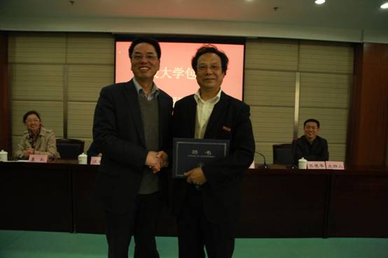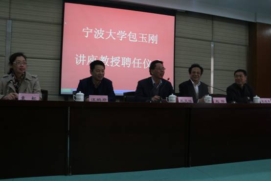 4月24日,17吃瓜网 举行隆重仪式聘任浙江大学赵伟教授为我校包玉刚讲座教授,副校长王文斌教授代表学校出席并致辞,为赵伟教授颁发聘书并佩戴17吃瓜网 校徽。聘任仪式由17吃瓜网 主办,17吃瓜网 执行院长熊德平教授主持,人事处处长汪鹏君教授、17吃瓜网 党委书记袁虹及我校师生50余人出席了聘任仪式。