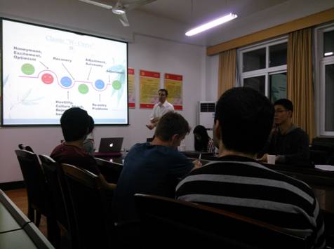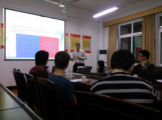 首先,来自美国在中国已有7年学习和生活经历的Alex English,从他自身的研究和经历出发,以理论联系实际的方式介绍了他对中国的文化、习俗和生活的深刻理解,并为留学生们推荐了快速融入中国的书籍材料和电子资源。随后,已在我院学习生活一年的学长R.J. Thomas分享了他在这里快乐学习、阳光生活的经历。最后,院党委副书记邵丽对新生的到来表示欢迎,并提出了殷切希望。