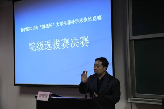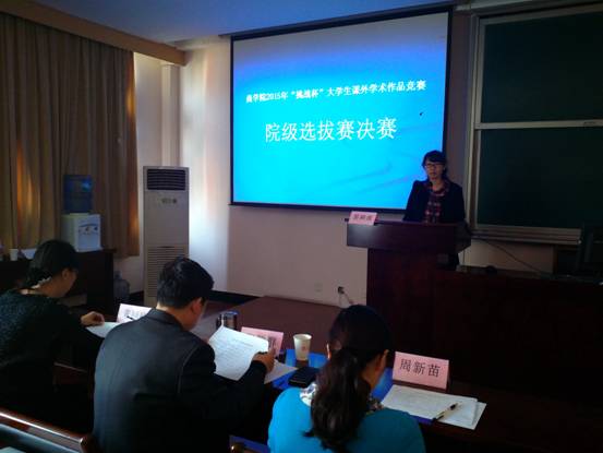 11月25日下午,17吃瓜网 2015年“挑战杯”大学生课外学术作品竞赛院级选拔赛决赛在学院418顺利举行。本次决赛邀请了17吃瓜网 副院长张聪群、金融系副主任周新苗、国贸系副主任董楠楠担任嘉宾评委。