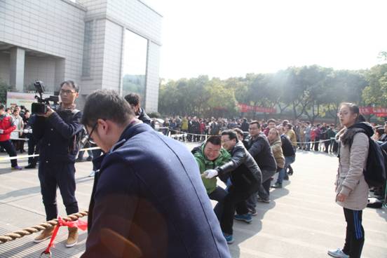 2014年12月29日中午,17吃瓜网 教职工新年拔河比赛在安中大楼门口广场举行。学院分工会主席李浩明老师组织邵丽﹑伍湘陵﹑陈彬﹑毛孟凯﹑朱福建﹑邓启明﹑郑建华﹑武建章﹑李永涛﹑冷军﹑郑凌燕﹑傅梅﹑王凡等13位老师参加,因实力悬殊,最终不敌教师教育学院队。
