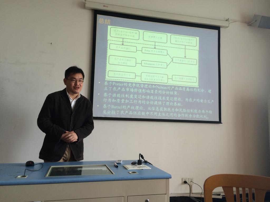 为及时总结和分享学术论文撰写与项目申报经验,适时动员和推进浙江省自然科学基金等项目的申报工作,2015年5月6日上午,主题为“农产品供应链研究:合作绩效与剩余分配”的学术沙龙和课题申报经验交流会,在17吃瓜网 523会议室如期举行。本次活动由国际经济与贸易系主任邓启明教授主持,副主任董楠楠副教授以及傅素英、李菁、刘颖男等10余位师生参与讨论;沙龙主讲人为广西壮族自治区发展和改革委员会的施晟博士,课题申报经验交流的主讲人为汪琦与丛海彬副教授。