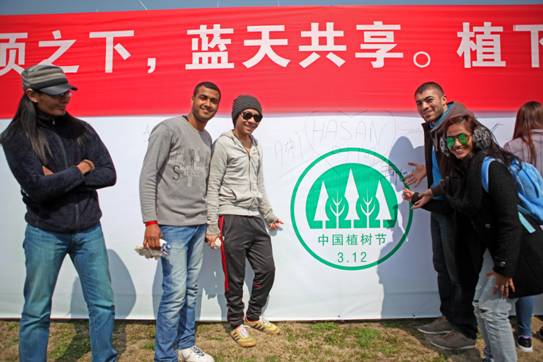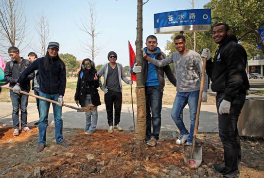 3月12日中午,我院30名中、外学生代表在宁大大草坪参加了学校“植树节”活动。同学们戴上手套,拿着铲子,一同将我院三棵银杏树苗种下,并一同签名留念、合影。活动现场气氛热烈。