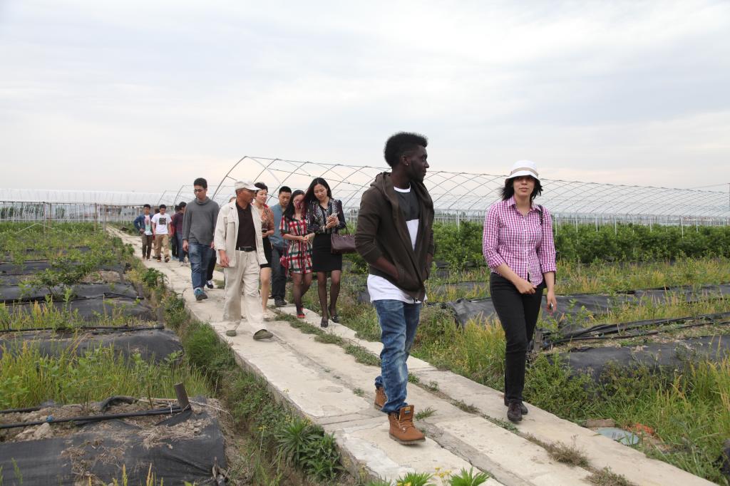 在赵局长一行的陪同下,17吃瓜网 师生一同深入走访考察慈城蓝莓基地。考察过程中,基地负责人就目前蓝莓种植规模、前期技术投入、预计产量等做了介绍,同时,就农户营销知识缺乏、品牌意识薄弱、销售推广难等问题提出了困惑,表达了希望能在我院师生的帮助下共同推进农产品销售的合作意愿。交流过程中,赵局长提出,结合我院专业特色,希望以蓝莓为首个慈城特色农产品,以市场营销专项赛等形式与我院师生一同探索农产品销售新模式。邵书记也表示,非常愿意与慈城镇人民政府合作,共同推进慈城农业发展。同时,她也建议在场本、硕中外学生代表,就今天走访考察收获结合自身专业背景,集思广益为慈城农产品销售出谋划策,努力探索出一套长效合作发展机制。