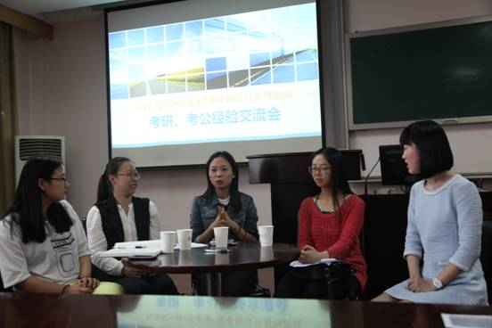 5月6日下午,“商•亮未来”就业指导月系列活动之考研、考公经验交流会于学院418教室顺利举行。此次分享会邀请了考取上海财经大学硕士研究生,金融系秦紫涵、保送湖南大学硕士研究生,会计系何奕轩、保送宁大硕士研究生,金融系钱欢欢、考取舟山市国税局,会计系郑珊珊4位优秀学子分享考研考公的心得体会。