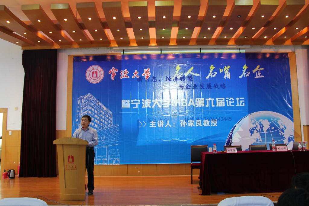 本次论坛邀请了浙江大学最受欢迎十大教授之一,资深经济学专家孙家良作为论坛的主讲嘉宾。本期主题是《新常态经济转型与企业发展战略》,他用通俗的语言、新颖的视角、丰富的信息,以宏观视野分析了国际经济环境对中国发展的影响,对当前经济发展新常态进行了解读。孙教授分别从什么是新常态、中国经济高速增长的最主要因素以及人口结构如何影响消费结构三个方面,和大家分享研究成果。孙教授广博的知识和深厚的学术底蕴赢得了广大MBA学员的高度认可。学员们被他幽默、风趣的授课方式所折服,纷纷表示受益匪浅。本次论坛的成功举办,对于活跃MBA学员的学术氛围,拓展MBA学员的知识视野具有重要意义。