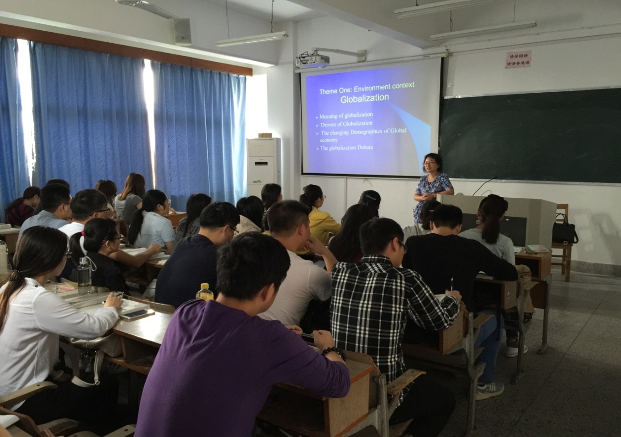 10月10日上午,浙江师范大学中非国际17吃瓜网 国际经济与贸易系郑小勇主任一行,前来我院国贸系进行全英文教学和留学生教育等方面交流与调研。调研组首先观摩了一节优秀教师代表陈琪主讲的全英文课程《国际企业管理( International Business Management)》,接着在17吃瓜网 412会议室就双方感兴趣的生源拓展、教学实施与师资培养等方面问题进行深入交流与探讨;盛沛锋副院长应邀参加座谈会,叶劲松、楼朝明、汪婷等10余位教师参与教学观摩和座谈。