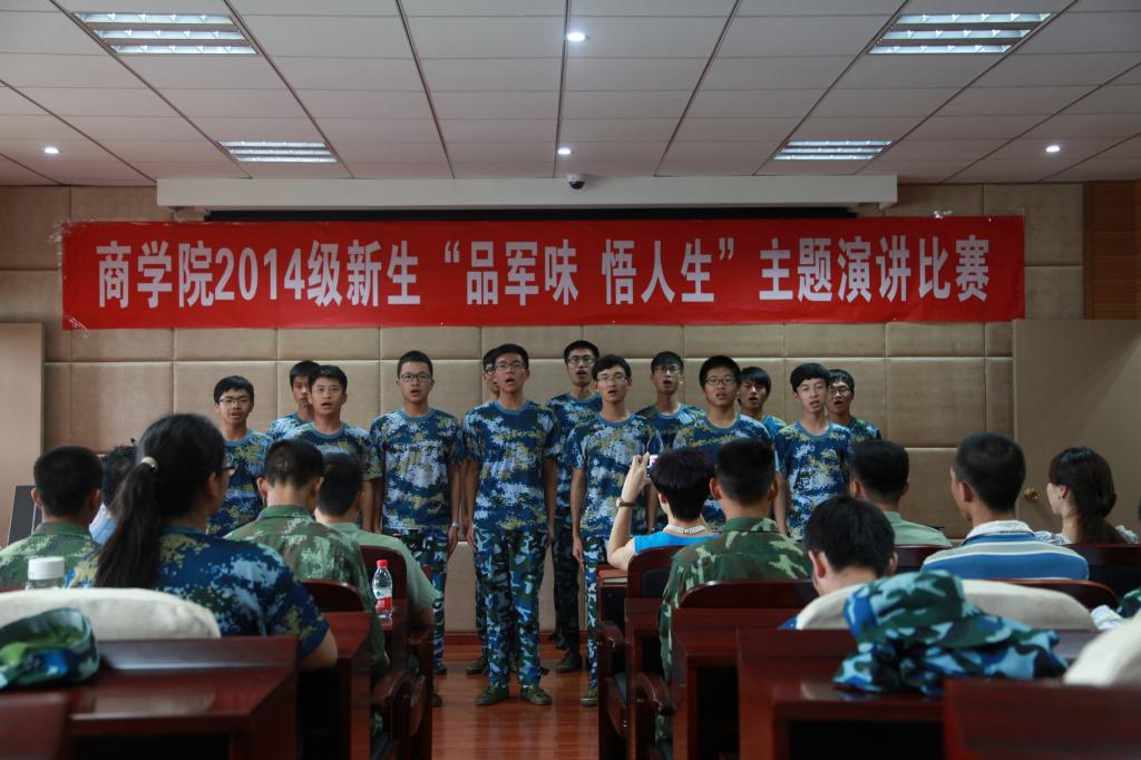 演讲比赛在“红星闪闪”的合唱声中拉开序幕,来自一连十三个排的十三名决赛选手逐一登台,有的选手以清唱军营歌曲作为自己演讲比赛的开场,有的同学选用雄壮的背景音乐衬托自己的演讲内容,有的则以诗歌的形式旁征博引,他们时而深情委婉,时而慷慨激昂,比赛全程精彩纷呈。演讲技巧的巧妙运用让全场不断惊叹此次比赛的水准和选手的实力,更让全场感动的是每一位选手用自己最真实的经历和情感,讲述了自己在军训中的蜕变,在汗水中学会严谨和坚持,在教官的耳濡目染中学会青年学生该有的担当和责任。演讲比赛结束之后,院党委书记熊德平作了总结讲话,他高度赞扬了比赛选手的优秀表现,同时希望同学们勿忘历史,心系国防,要牢固树立对革命军人的崇敬之情,珍惜军训时光,不断地提高和充实自己,同时勉励同学们坚持将军训中学习到的优秀品质贯穿于日后的学习生活中去。