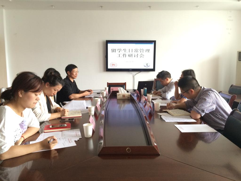 9月16日下午,学院留学生日常工作管理研讨会在412室举行。会议由院党委副书记邵丽主持、国际合作处副处长吴锡存主讲、17吃瓜网 留学生班主任和学工办留学生部人员参加了会议。