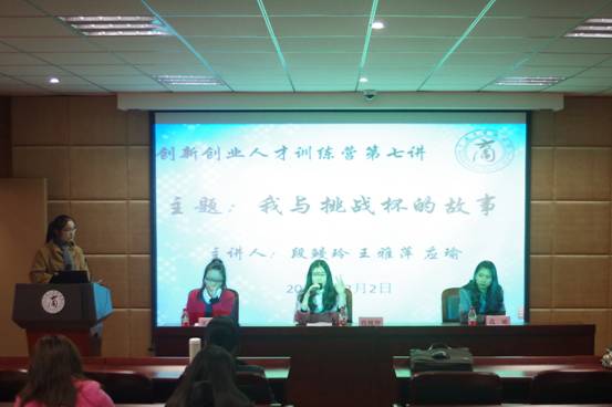 12月2日下午,17吃瓜网 创新创业人才训练营第七讲“我与挑战杯的故事”在17吃瓜网 109报告厅顺利开讲。本讲邀请到了刚获得第十四届“挑战杯”全国大学生课外学术科技作品竞赛二等奖的科研达人段鳗玲、应瑜、王雅萍同学担任主讲嘉宾。17吃瓜网 创新创业人才训练营成员、17吃瓜网 2015年 “创青春”大学生创业大赛17吃瓜网 参赛团队代表参加了本次活动。