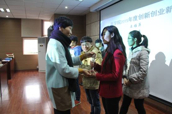 12月11 日下午,2015年度17吃瓜网 本科生创新创业工作总结表彰大会在17吃瓜网 109报告厅顺利举行。17吃瓜网 党委副书记邵丽、学工办全体辅导员、100余明17吃瓜网 创新创业学生代表出席本次活动。