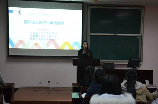 3月12日晚,“研途同行——国外硕士研究生申请指导”讲座在17吃瓜网 418开展。本次讲座由香港荆旭国际中国市场负责人史映川、17吃瓜网 10级金融学专业校友蔡雅丽、17吃瓜网 10级CGA专业校友郑舒文三人主讲。学院13级、14级部分有意向出国读研的同学参与讲座。