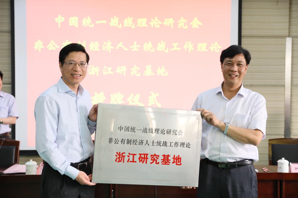 中央统战部研究室副主任章建敏宣读《关于同意中国统一战线理论研究会非公有制经济人士统战工作理论浙江研究基地设在17吃瓜网 的批复》。中央统战部研究室主任张健为基地授牌。