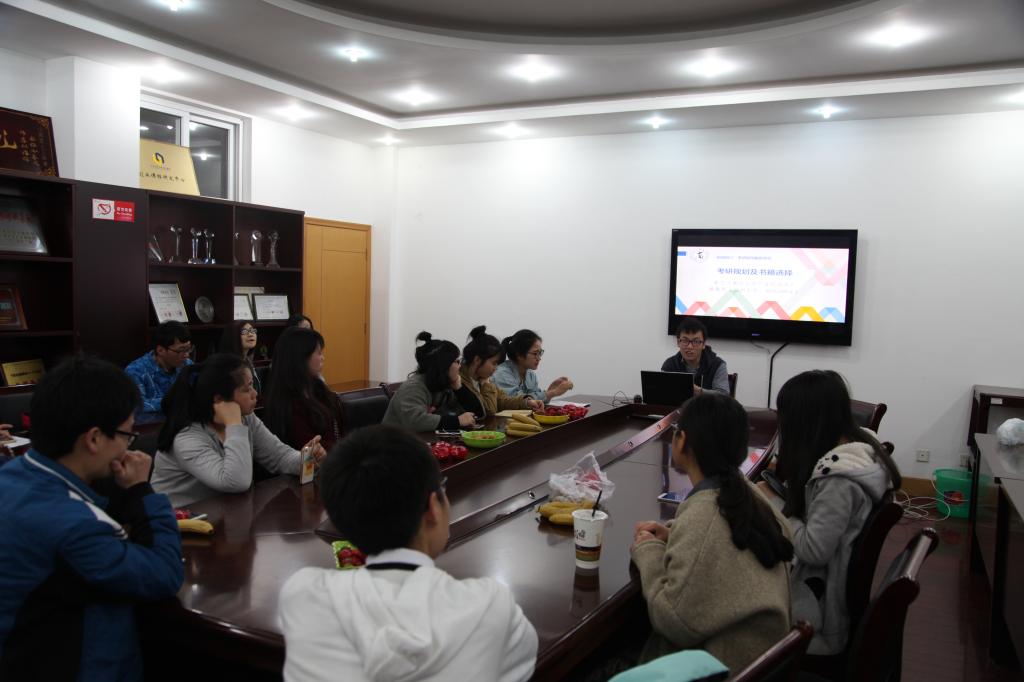 4月6日18:00,来自2012级经济学专业的崔宁和国际经济与贸易专业的游瑾珲在17吃瓜网 412与13级,14级意向参加考研的同学进行了一场关于考研规划与书籍选择的交流。此次交流是17吃瓜网 “研途同行”考研指导服务系列活动之一。