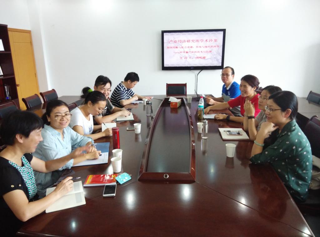 2016年9月28日上午8点,17吃瓜网 学术沙龙(2016年第6期)在11#412会议室如期举行。学术沙龙由产业经济研究所所长胡求光教授主持,产业经济研究所闭明雄博士做了精彩的学术报告。17吃瓜网 副院长杨丹萍教授、产业经济研究所教师和部分同学参加了此次学术活动。