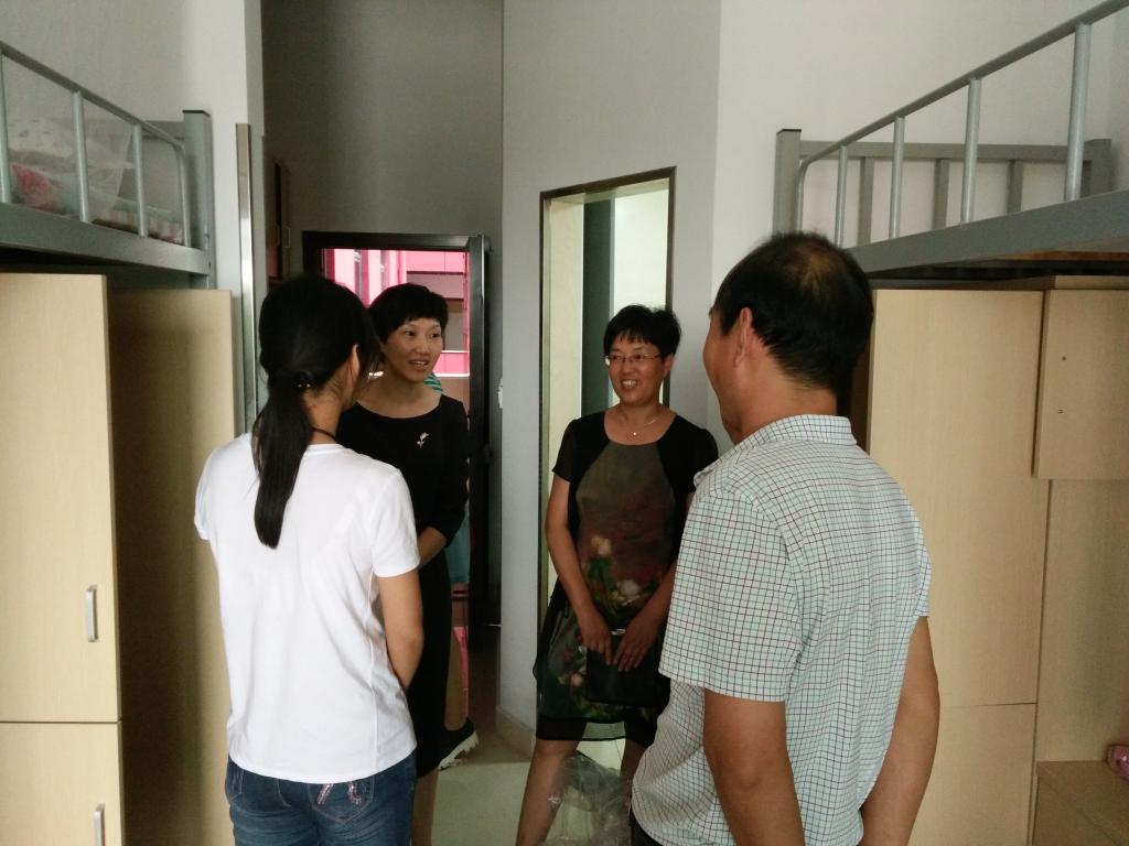 迎新期间,我院党委书记胡亚娥、副书记邵丽一同来到迎新现场对我院迎新生工作亲自进行指导,关切新生报到情况,并亲切地慰问了一线工作人员和志愿者们,对大家的辛苦付出表示关怀和肯定,希望辅导员老师和学生干部能坚守岗位,保质保量地完成迎新工作。之后胡书记一行深入学生宿舍,并邀请了部分学生家长代表在学院412会议室举行了家长座谈会,就双方关心的问题进行了深入交流。