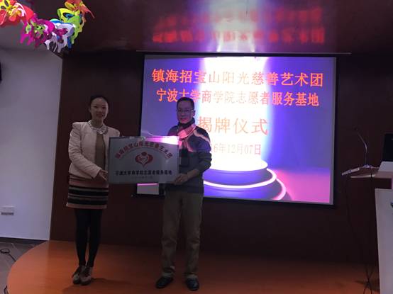 此次基地的建立旨在为有需要的残疾人、自闭症儿童、盲童提供针对性的志愿服务。至此,我院团委拥有的挂牌青年志愿服务基地增至4家(另3家分别为宁波美术馆、宁波市江北区欣和苑养老爱护中心、镇海区车站路社区)。挂牌青年志愿服务基地的建立不仅丰富了我院青年志愿服务阵地,使志愿服务活动常态化、制度化,而且可以吸引更多热心社会公益、乐于奉献的青年学生、爱心人士参与到志愿服务队中来。
