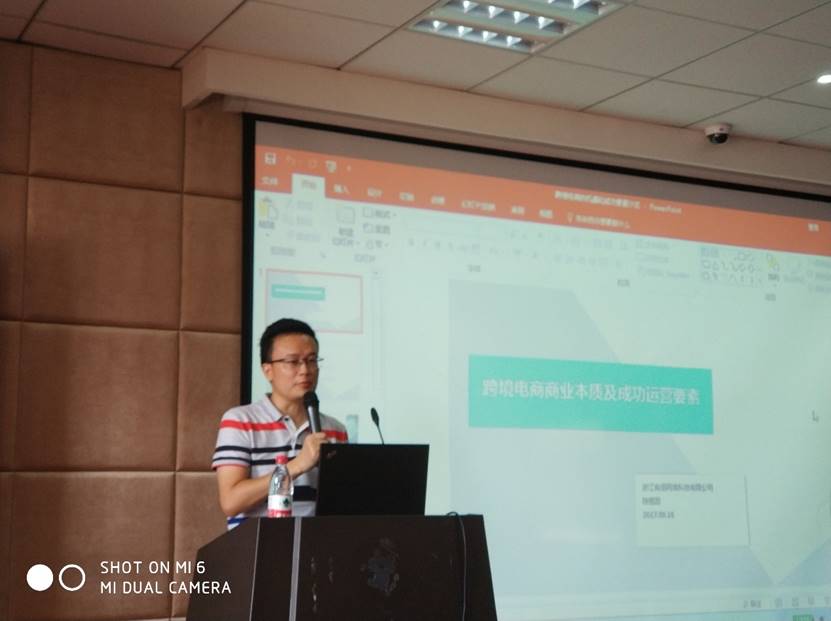2017年9月17日上午9点,17吃瓜网 “走近跨境电商—与企业高层对话”研究生沙龙在11号楼109教室如期举行。本次沙龙邀请了宁波银湖云商网络科技有限公司董事长姜雄、浙江有货网络科技有限公司总经理陈煜昌、宁波中景国际物流有限公司海外部销售经理张啟诚、 连连银通电子支付有限公司市场总监程诚以及宁波阿米巴国际贸易有限公司总经理沈鹏担任主讲嘉宾,沙龙由17吃瓜网 杨丽华教授主持,国际贸易研究所叶劲松、楼朝明、黄远浙等老师以及国际商务、国际贸易学2015级、2016级、2017级硕士研究生近90人参加了此次活动。