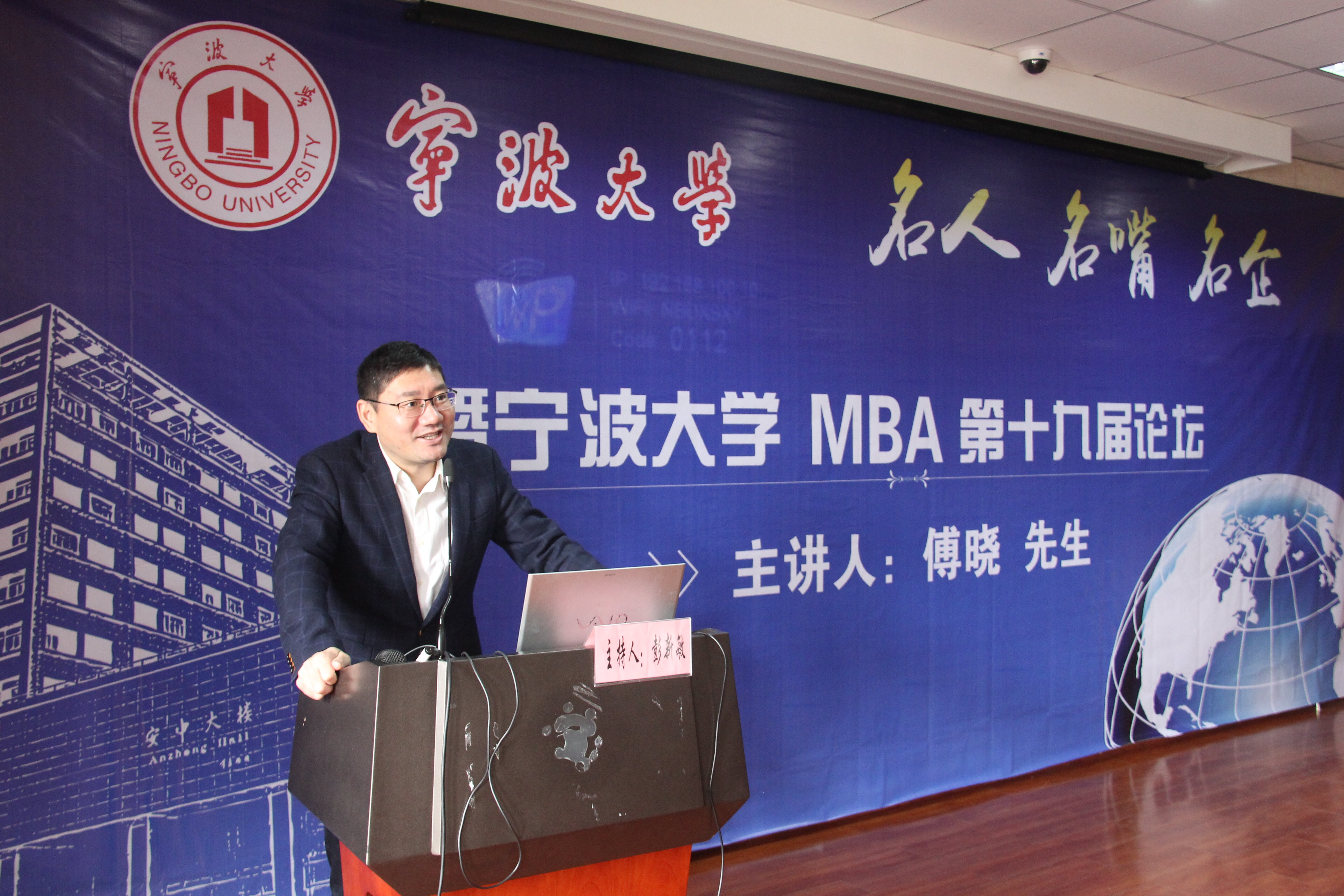 本次论坛邀请了现任宁波市人民政府地方志办公室副主任、市哲学学会副会长、市人民政府咨询委员会委员、市城乡规划委员会专家委员会委员、经济学博士傅晓作为论坛的主讲嘉宾,本期的主题是“新产业革命和区域经济发展”。傅晓和学员们分享并探讨了当前关于产业转型升级和企业发展的若干问题。傅晓引用了十九大报告中关于产业和创新的一些论述,指出了目前企业创新的重要性并介绍了产业革命发展的历程、新产业革命的内涵和特点、新产业革命带来的变化以及新产业革命对经济的影响等。他分别结合政府和企业两个层面,重点分析了推动区域经济转型升级的具体措施。最后,在现场提问的互动活动环节中,许多学员积极发言,傅晓就学员提出的问题与大家交换了许多宝贵的建议和意见,并且鼓励MBA学员要积极主动去读经典、拜名师、访名企,真正地将理论与实践结合起来。现场活动中,傅晓的专业讲解和独特见解赢得了在场观众的阵阵掌声。持续两个多小时的活动无论是在内容还是在得到的反馈上都达到了预期的目标,并得到了与会者的一致肯定,纷纷表示此次论坛来了许多收获。