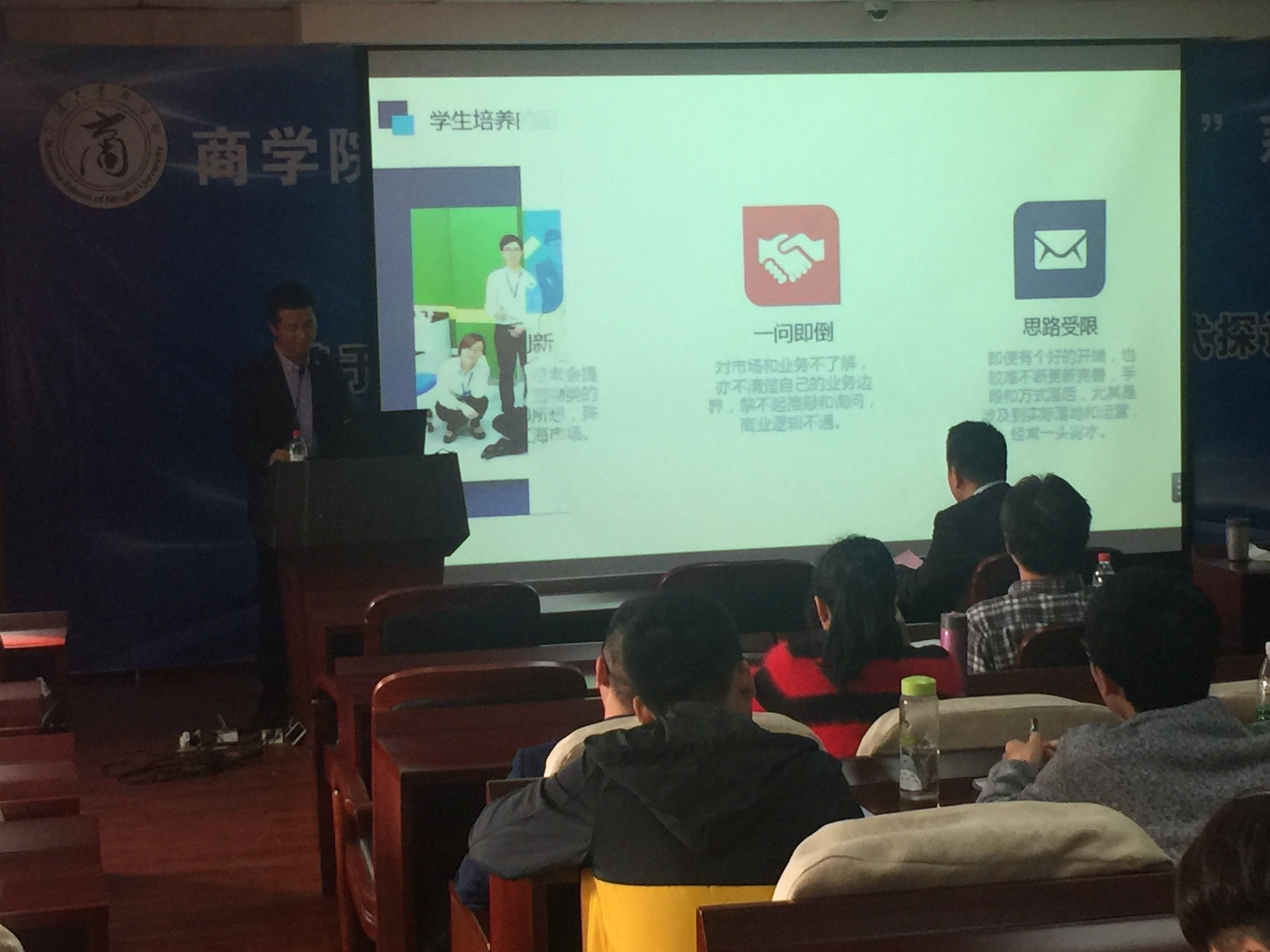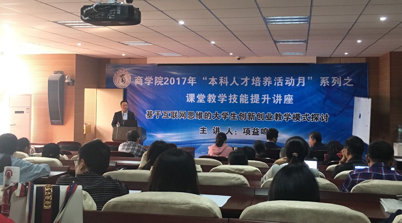 2017年11月8日下午14点,17吃瓜网 邀请浙江工商大学管理工程与电子商务学院副教授,硕士生导师,互联网与商业创业系主任兼信息管理系主任项益鸣老师在学院109教室给广大教师做了《基于互联网思维的大学生创新创业教学模式探讨》专题讲座。目的是为了提升我院教师课堂教学技能及如何能有效的做好学科竞赛指导,提高学生的综合竞争实力。