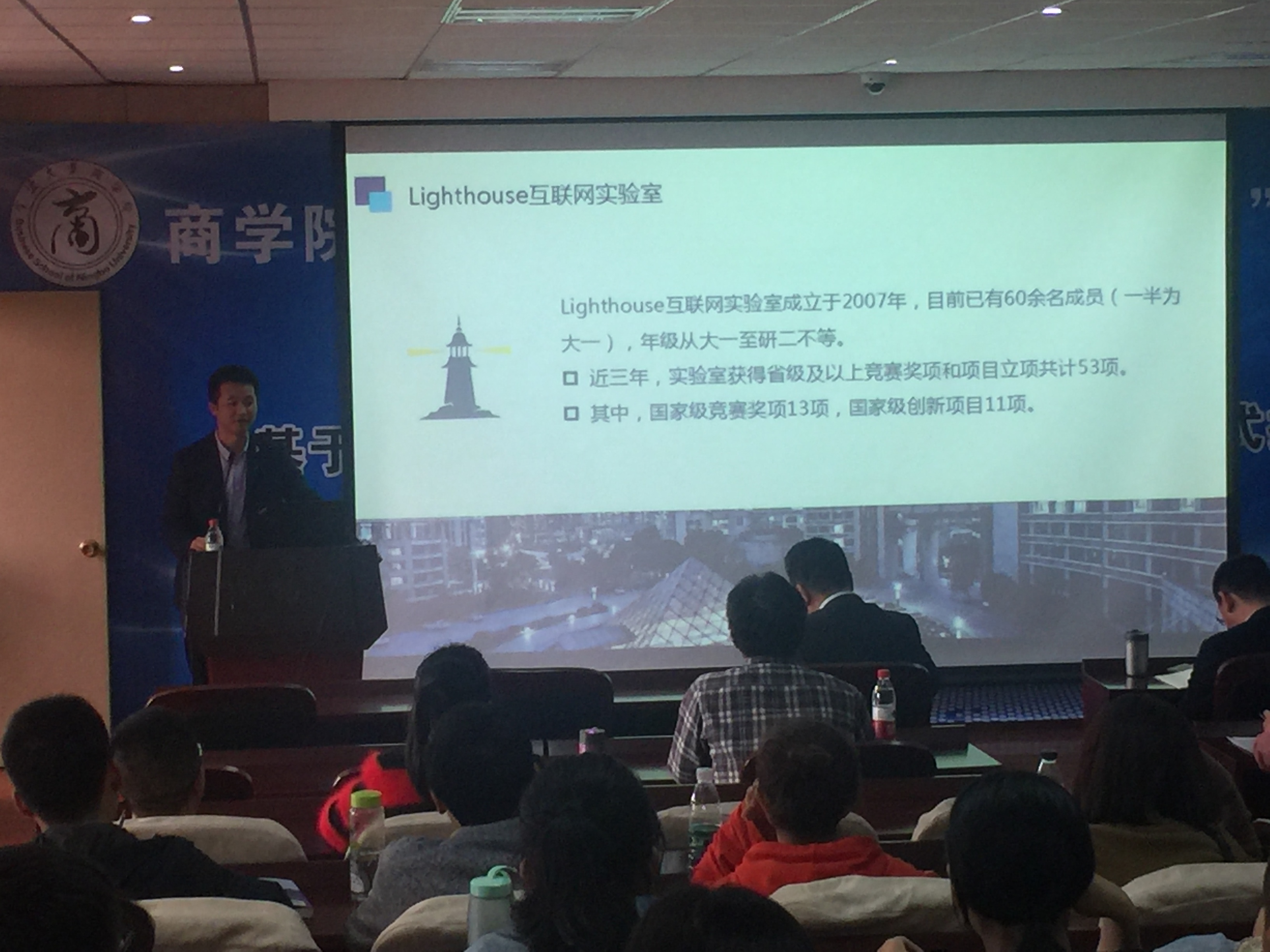项老师给老师们分享了他创办Lighthouse 互联网实验室及指导学生学科竞赛的成功经验,他还就如何走出学生培养的困境;如何有效的加强学生的专业知识培养;如何通过高年级与低年级之间的“传帮带”形成良性循环构建学科竞赛团队;提升课堂教学技能的关键点等方面给大家介绍了他的心得体会。