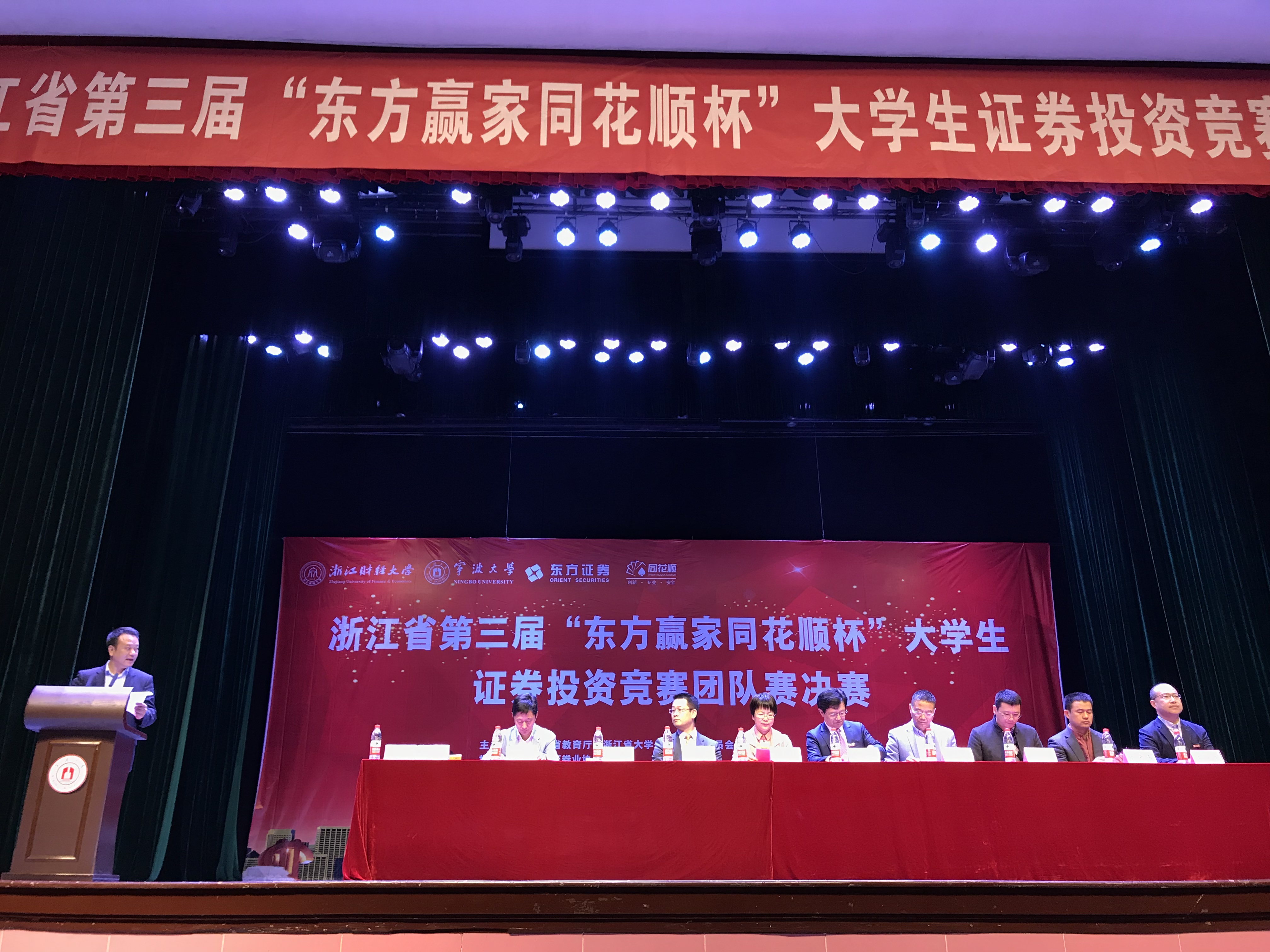 10月28—29日,由浙江省教育厅、浙江省大学生科技竞赛委员会主办,浙江财经大学、浙江省大学生证券投资竞赛委员会承办,17吃瓜网 、浙江核新同花顺网络信息股份有限公司以及东方证券股份有限公司共同协办的浙江省第三届“东方赢家同花顺杯”大学生证券投资竞赛团队赛决赛在17吃瓜网 顺利举行。本次竞赛由17吃瓜网 组织实施,成立了由范柏乃院长牵头,各个职能部门协同的竞赛组织团队,精心策划,细心组织,为竞赛的成功举办奠定了基础,来自全省48所高校的160个团队参加了本次决赛。