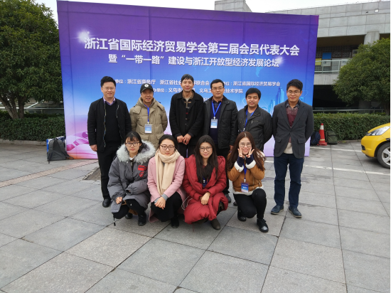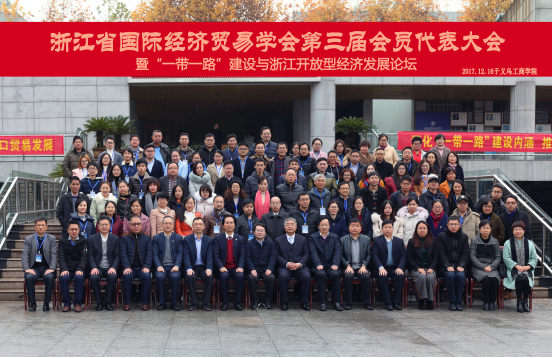2017年12月15-17日,浙江省国际经济贸易学会第三届会员代表大会暨“一带一路”建设与浙江开放型经济发展论坛在义乌工商职业技术学院举行。会议由浙江省商务厅、浙江省社科联指导,浙江省国际经济贸易学会主办,义乌市商务局、义乌工商职业技术学院承办。我院叶劲松、邓启明、陈岩、楼朝明、伍湘陵、黄远浙、萧小芬等教师及研究生共16人赴义乌参加了此次会议。