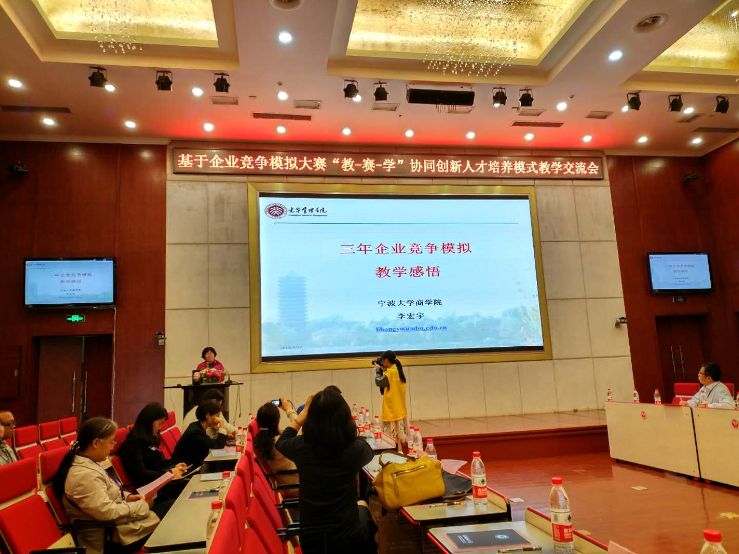 在大赛鏖战之际,来自全国众多院校的指导老师、领队老师们组织了一场专业而深入的经济管理实验教学研讨会,我院指导老师李宏宇授邀在研讨会上做主题发言,各位老师就相关课程的开设、比赛的组织与开展、以教学带比赛、以比赛促教学等方面分享了自己的宝贵经验。