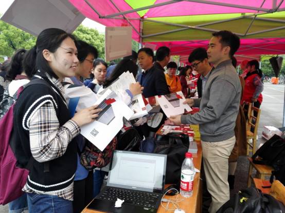 4月14日-15日,17吃瓜网 2018年本科“三位一体”综合评价招生面试,我校利用众多陪考家长来到学校的机会,在学校包玉书楼北广场举行各本科专业招生咨询会,今年的咨询会场面火爆,吸引了各地的考生和家长。