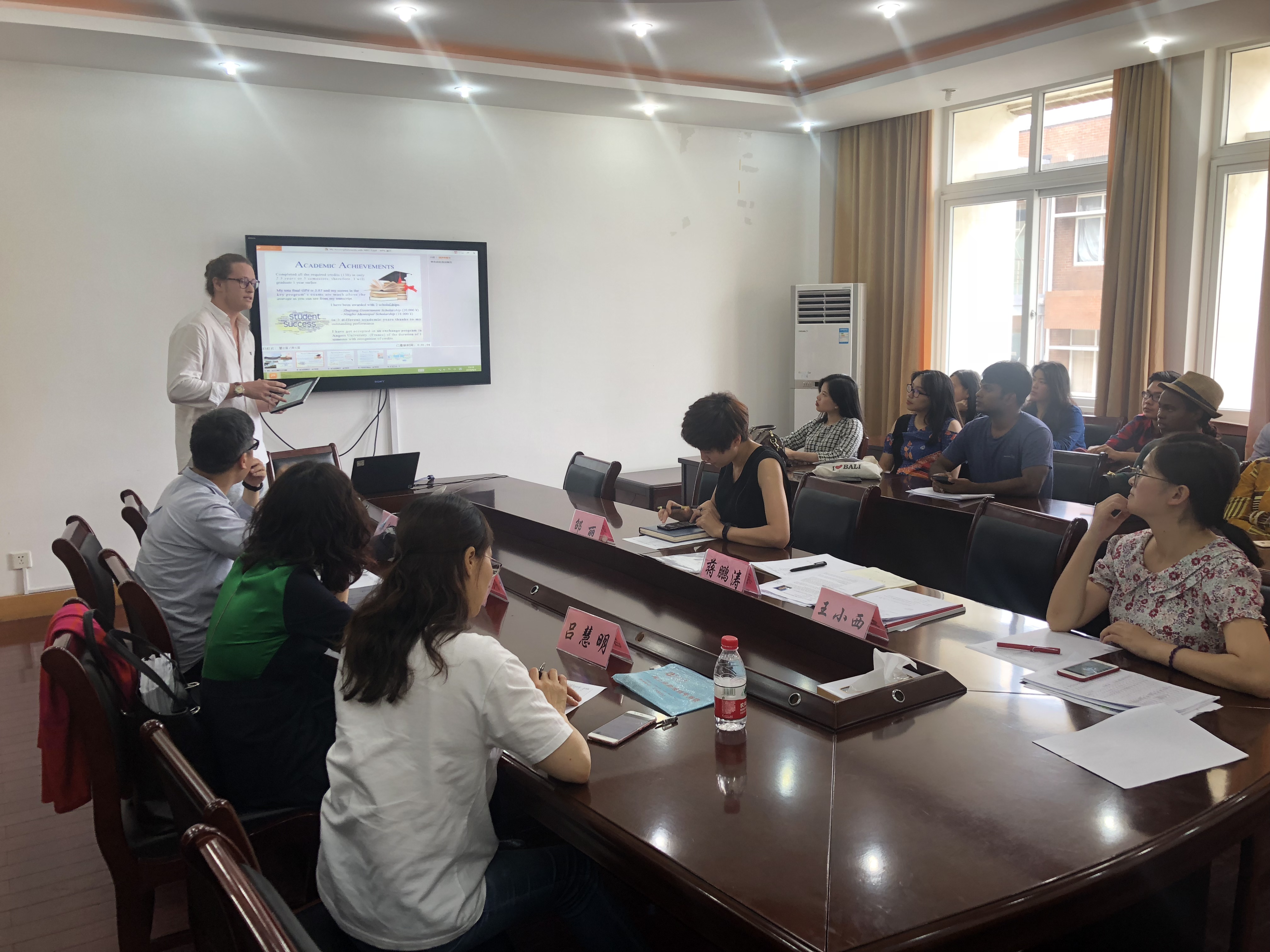 评审会上,各位参评选手依次陈述了在华期间的思想品德、学习成绩和主要业绩。与会评委对陈述情况进行了讨论和表决。