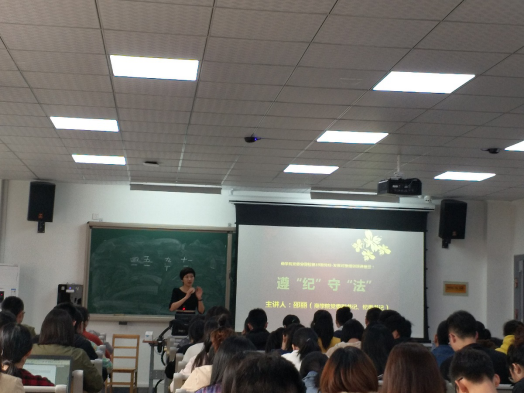 11月7日中午,院党委副书记、纪委书记邵丽在包玉书科学楼八号楼104教室为我院党校发展对象培训班学员上了一堂题为“学生党员如何遵‘纪’守‘法’”的党课,100名本学期重点发展对象认真听讲。