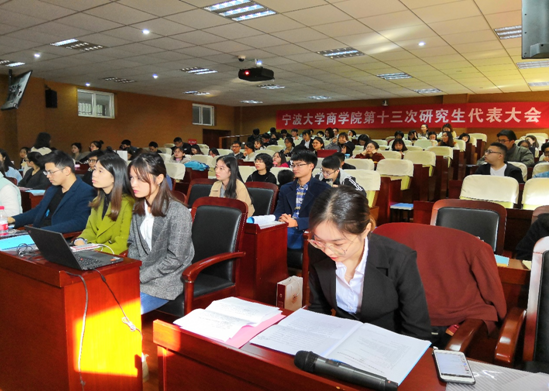 11月23日下午,我院第十三次研究生代表大会在包玉书11号楼109报告厅顺利召开。院党委副书记邵丽、学工办主任董璐、团委书记陈彬、留学生辅导员毛跃祖、研究生辅导员章舒怡,校研会代表邵佳、各兄弟学院研会代表出席了此次大会。18级全体研究生、17级和16级研究生代表参加了此次活动。