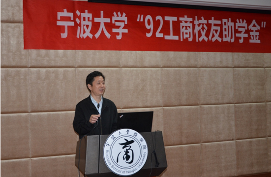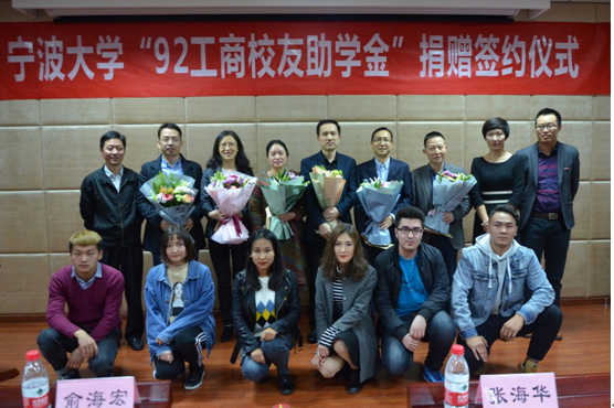 11月16日,17吃瓜网 “92工商校友助学金”捐赠签约仪式在109室举行。出席本次捐赠签约仪式的有92级工商经济系本科班校友代表俞海宏、张春雷、周攀峰、马益波、李毓慧、郑文红,17吃瓜网 校友发展联络处处长助理、校友办主任助理张海华,17吃瓜网 党委书记史宏协、副书记邵丽,17吃瓜网 受助学生、第19届业余团校学员120余人。仪式由17吃瓜网 校友联络服务中心主任汪杰峰主持。