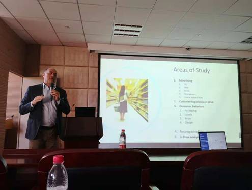 2018年10月29日下午,17吃瓜网 学术报告在包玉书科技楼11号109会议室顺利举行。报告的题目为“The study on advertisement by using simultaneously eye-tracking, EEG/ERP, and GSR”。本次学术报告由我院主办,17吃瓜网 神经经济管理学研究院承办,主讲人为米兰国际语言与传播大学消费与神经营销心理学教授Vincenzo Russo,报告由郁雯珺老师主持,研究院院长马庆国教授致欢迎词。我院部分老师、部分本科学生及研究生参加了此次学术活动。