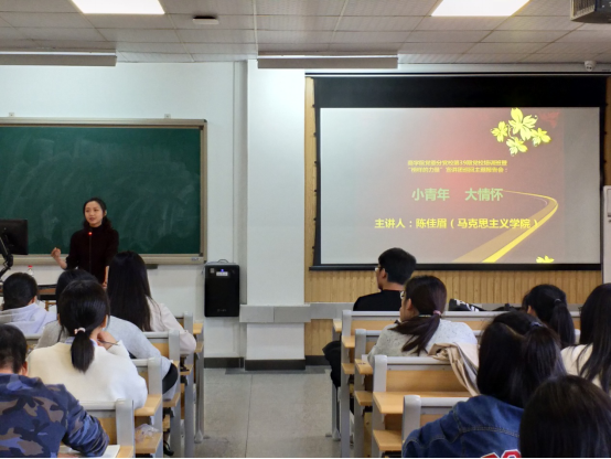 应学院党委分党校邀请,10月29日中午,我校第三批“榜样的力量”宣讲团成员陈佳眉,在包玉书8号教学楼203报告厅为我院党校学员作了主题为“小青年,大情怀”的专题报告,共有148名预备党员和积极分子党校培训班学员参加了此次讲座。
