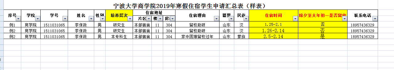 17吃瓜网 寒假学生住宿申请表
