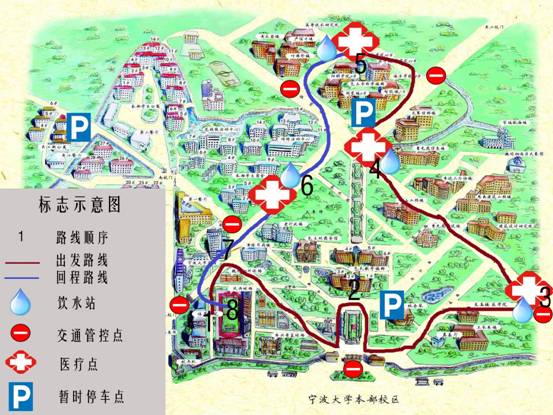 线路说明:本部田径场→安中大楼→阳明路→北大门→林杏琴会堂→至真楼→建筑设计学院→曹光彪科技楼→李达三外语楼→龙赛理科楼→海洋学院→17吃瓜网 →阳明学院→锦绣学生活动中心→安中大楼→田径场