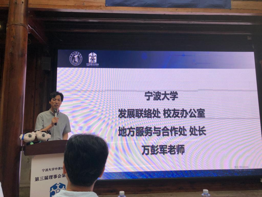下午4点,会议进入正式议题。万彭军处长首先代表学校向现场的校友们介绍了学校的最新发展情况。我校自2017年成为“双一流国家建设高校”以来,近几年取得较快发展,在全国高校排名进一步提升,同时,在办学空间、教育经费、科研项目,以及绩效收入等四个方面均实现了“翻一番”。在主要科研指标、高层次人才引进、科研团队建设以及“双一流”经济评估等工作方面取得了较好的成绩。万处长指出,“双一流”大学的工作建设离不开高质量、高水平的校友工作。17吃瓜网 目前已组建了60多个校友会,其中包括4个国外校友会以及含中澳MBA校友会在内的4个地方或行业特色校友会。今年9月,校友办计划通过中澳MBA校友会的平台基础,进一步拓展建设17吃瓜网 的澳洲校友会,届时可将17吃瓜网 的地方校友会、全国的宁波商会,以及17吃瓜网 三方的力量结合起来,实现资源共享,共谋发展。讲话中,他也对新一届的中澳MBA校友会提出共勉共进的三点希望与要求,希望他们担当新使命,构建新格局,进一步凝聚和发挥校友之力,为校友成长发展提供帮助与支持;通过积极探索产学研合作等新模式,实现校友与学校的互利共赢,共同发展。