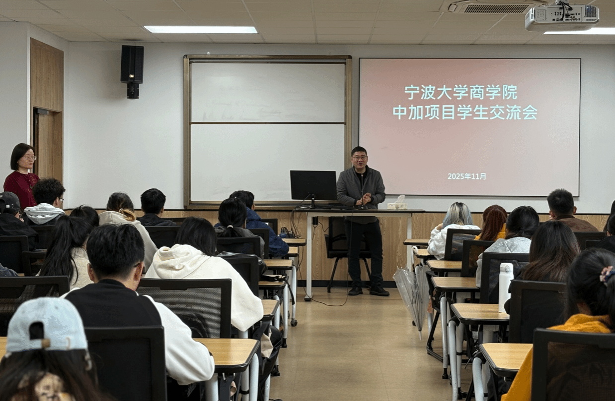 为增进我院中加项目学生对项目的了解,明确未来学业规划,2025年11月6日,学院举办了面向2024级与2025级中加项目学生的交流分享会。本次交流会吸引了两个年级共60余名学生参与。